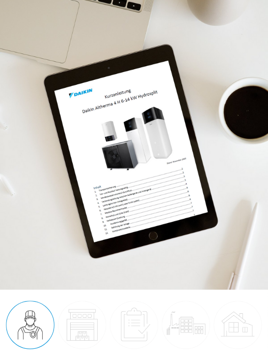 Zur Vorbereitung der Installation finden Sie hier unsere Kurzanleitungen für Monoblock- und Split-Wärmepumpen.