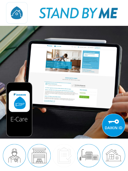 Die DAIKIN ID ist ein Single Sign On, mit dem Sie sich mit einem Profil bei verschiedenen Daikin-Anwendungen und -Diensten anmelden können. Sie müssen sich nur einmal anmelden und bleiben angemeldet, wenn Sie andere Daikin-Anwendungen besuchen. Es ist nicht erforderlich, sich für jede Anwendung separat anzumelden.