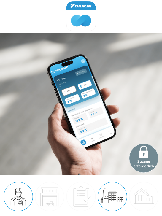 Die Tools, die mit DAIKIN ID zugänglich sind, erkennen Sie am blauen Symbol mit Schlüssel.