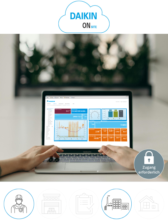 Unsere Lösung zur Cloud-Anbindung von DAIKIN Lüftungsgeräten und Kaltwassersätzen zur Überwachung und Steuerung all Ihrer Projekte.
