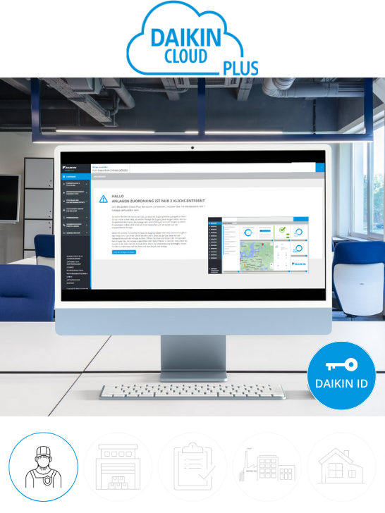 Die Tools, die mit DAIKIN ID zugänglich sind, erkennen Sie am blauen Symbol mit Schlüssel.