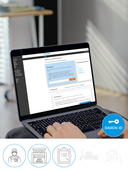 Die Tools, die mit DAIKIN ID zugänglich sind, erkennen Sie am blauen Symbol mit Schlüssel.