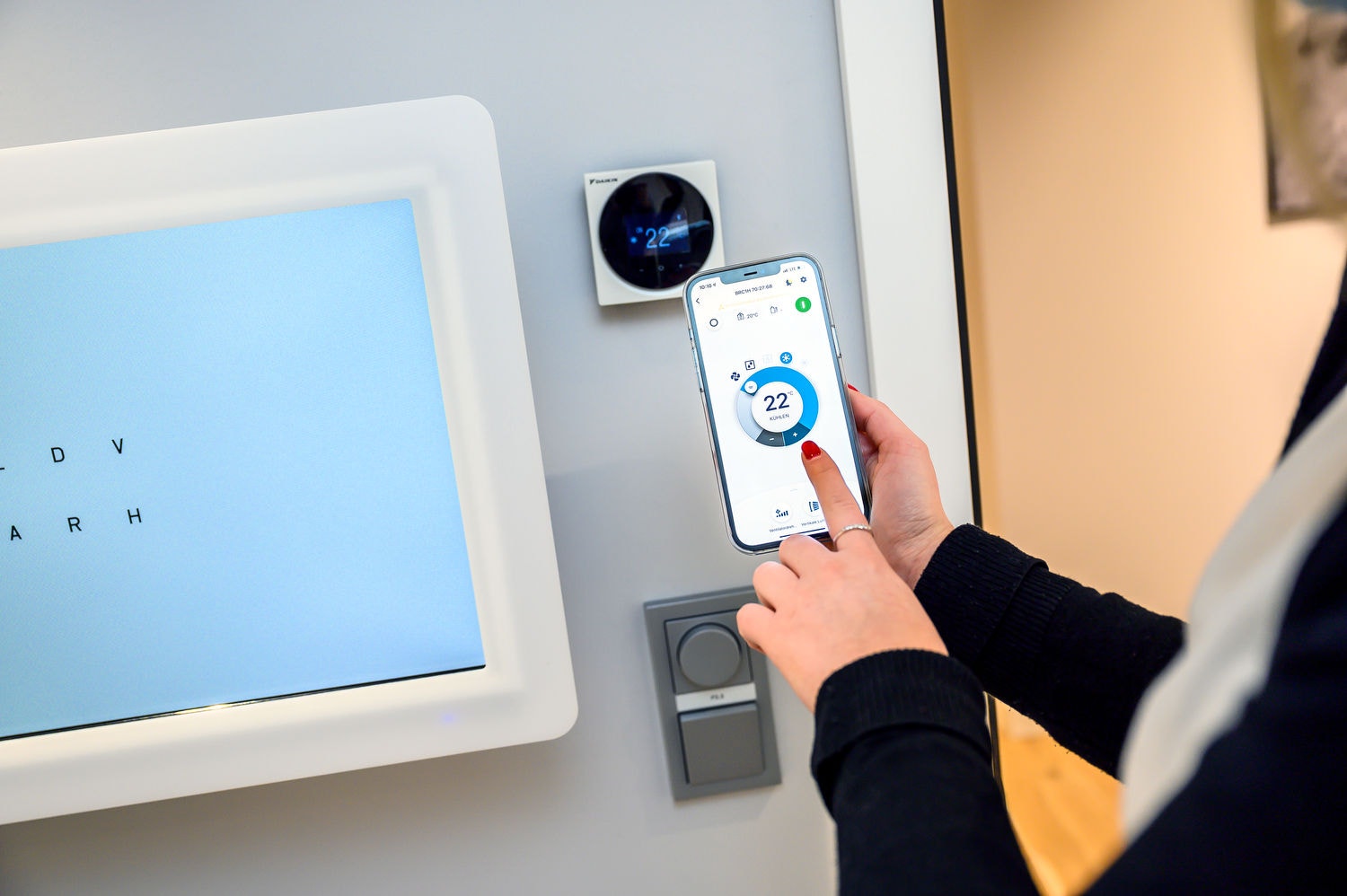 Im Vorfeld des Umbaus der neuen Räumlichkeiten wurde nach einer optimalen Lösung für die Raumklimatisierung gesucht. „Letztendlich waren für Kind die Qualität der Anlagen und ihre Energieeffizienz, ein guter Support, eine schnelle Verfügbarkeit sowie die Kostenstruktur ausschlaggebend. Die Wahl fiel dabei schnell auf DAIKIN“, erklärt Ansgar Hellmich, Head of Architecture/Storedesign bei der Kind Hörgeräte GmbH. Bedeutend bei der Entscheidungsfindung waren für ihn außerdem, die positiven Erfahrungen in der Zusammenarbeit bei vorherigen Projekten mit Daniel Begere von der Kälte-Klima GmbH Bertuleit & Müller. Für die Feinabstimmung und als zentralen Ansprechpartner des Projektes holten die beiden zudem Dirk Sager, Key Account Manager bei DAIKIN Airconditioning Germany GmbH, mit an Bord. Sager bringt 24 Jahre DAIKIN Erfahrung mit. Daniel Begere, Betriebsleiter bei der Kälte-Klima GmbH Bertuleit & Müller, der die DAIKIN Geräte mit seinem Team vor Ort verbaute, ergänzt: „Die Klima- und Lüftungstechnik wurde im Planungsprozess der Kind Filiale in Duisburg früh mit eingebunden. So konnten wir alle Kundenwünsche – wie zum Beispiel die spezielle Vorrichtung zum Abschalten der Lüftung bei Hörtests im Hörstudio – von Anfang an berücksichtigen.“